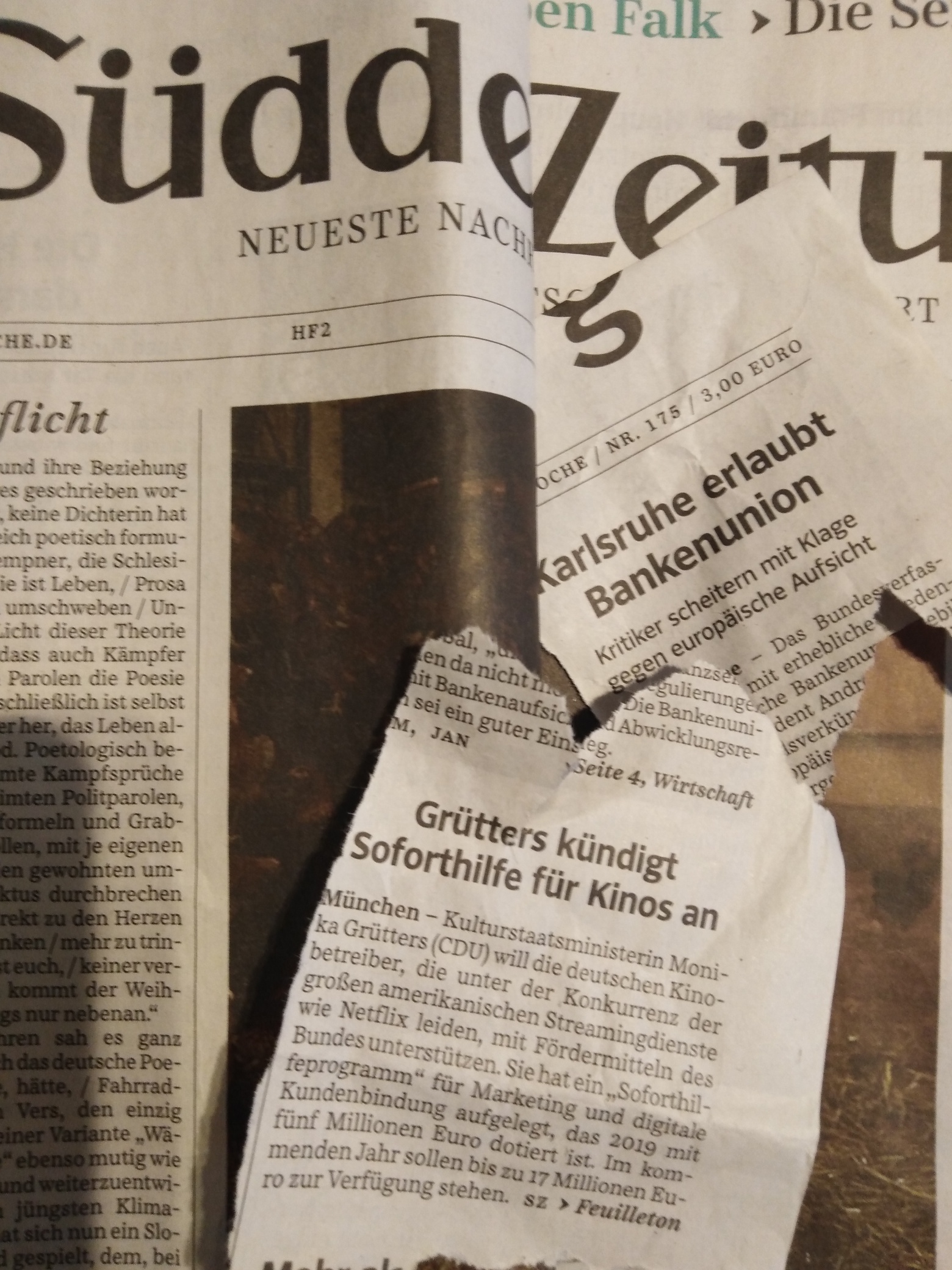 The other day I read in the SZ two short notes, each referring the to a main article in other sections. The one dealing with the control of banks, the other looking at subvention of cinemas in Germany.