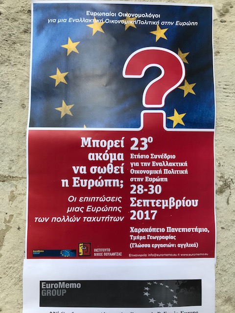 a long way … from the priests on the Acropolis [ἄκρον (akron, “highest point”) and πόλις (polis)] to the gardens which had been the roaming place of the philosophers to the reality of today’s Europe …- back at the desk after returning from Athens, where we organised at the Harokopio University in Athens, with support of the Nicos Poulantzas Institute the Euromemo-conference under the title