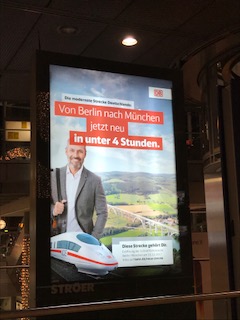 From yesterday then: Berlin – Munich in less than four hours. New trains I assume, tightened rails I suppose, new schedules for sure, new staff may be …? Of course that shortening of the journey is a great disadvantage. On the other hand, there is no opportunity, no reason to look out of the window. The magic four: every four years elections; every four month amending laws; every four weeks a new diploma; every four days we may get a new job …, if we get one; every four hours we read entire libraries, summarised in some wiki.