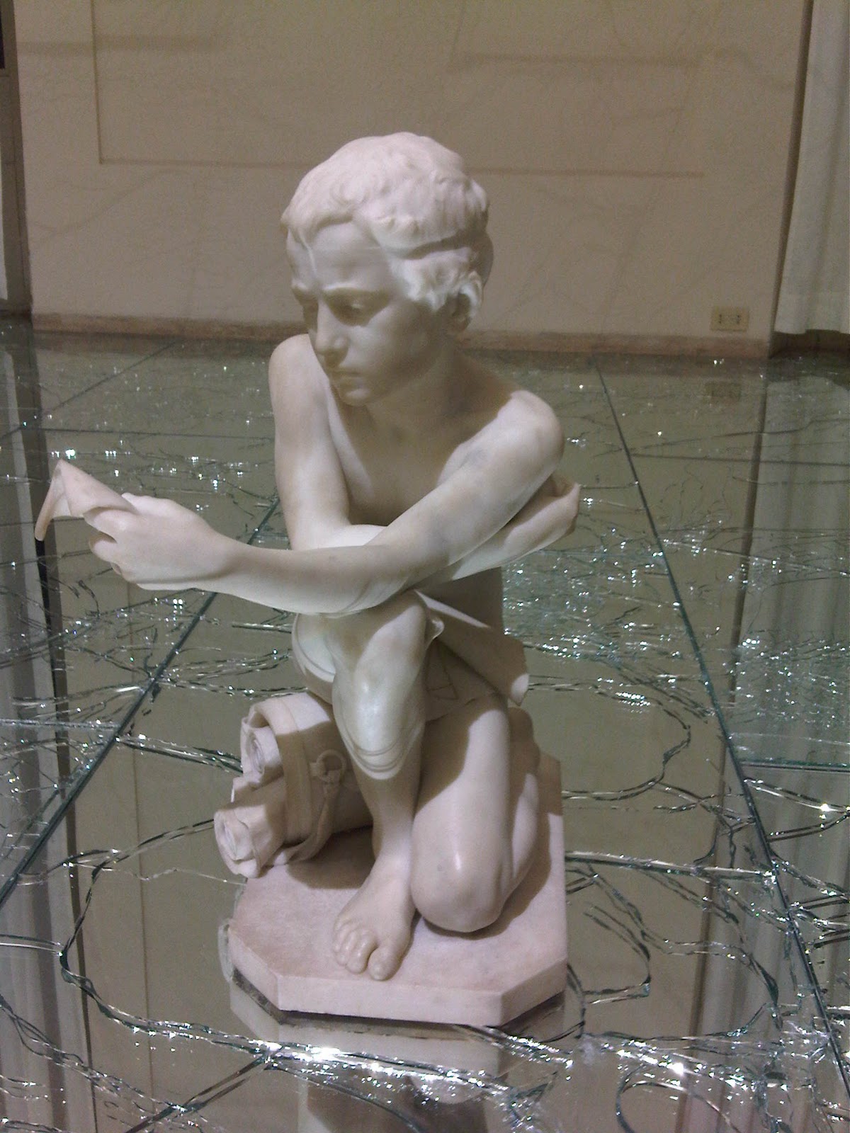 I think it is in some way remarkable that I bought the book in an arts gallery: arts seems to be much better able to reflect its origins without sticking to it like the fly in the trap, sweetened by honey, pleasing like Adonis, in Greek mythology the god of beauty and desire and dazing like opium. If life, real life, would support us in every day to live history in this “dialectical way”: keeping the valuable, but push the overcome part on the rubbish heap of history, mutual respect would surely be easier to reach. But as long as organisations claim to be states … All this has surely another dimension too: if and to the extent to which the church did have a legitimate role society it had been at times that are in social science frequently looked at in terms of cooperative, associational, communal … . There is much transfiguration going hand in hand with this – the golden ages of harmonious communities have never been really prevalent, at least not during those times that we may consider as sufficiently known. Nevertheless, there surely had been times preceding the modern state. and this brings us to a critical point, looking at many of today’s political movements, not least some of those claiming very critical positions against the current mainstream. Again. I do not want to question the credibility of these claims. Nor do I want to claim knowing the answers. To be honest, I am still looking for the exact question. At least I feel uncomfortable, looking at solutions based in values, in good will, in general feelings and partial analysis, not considering the fundamental changes of the productive systems. New quest for salvation: in old religions, revived Evangelism or new claims of excellence are unlikely to help. As said, I had been in the Galleria nazionale d’arte moderna. Entering the exhibition-hall, there is first a fascinating …, installation: The floor of the entire hall is a mirror, a broken mirror. Old statues standing on it … Can we say: Antonio Allegretti’s “Eva dopo il peccato” (1881) in desperation of what she lost? Giacomo Ginotti’s “Euclide” (1883) not understanding that the blueprints he made, didn’t work out? Alfonso Balzico’s “Guiletta” (1884-1886) hesitatingly-amused by looking at what emerged and could have been known by everybody? And the same Balzico’s “La Civetta” (1856-1860) even openly positioning herself beyond these worldly trivialities? Still, for all of them it is still very much a game – a bright light still shining – not victims like those who did the actual work, the ones, for which the hope of the regeneration of the soul, which is supposed to happen every seven years, doesn’t exist. It may be pure incidence that I communicate these days with Rainer about an article he sent in connection with some debate on some writing on religion: Hearing the Voice of God. Anthropologist Tanya Luhrmann studies how American evangelicals experience the friend they have in Jesus (article by by Jill Wolfson; July/August 2012). He asked me for my opinion on it: